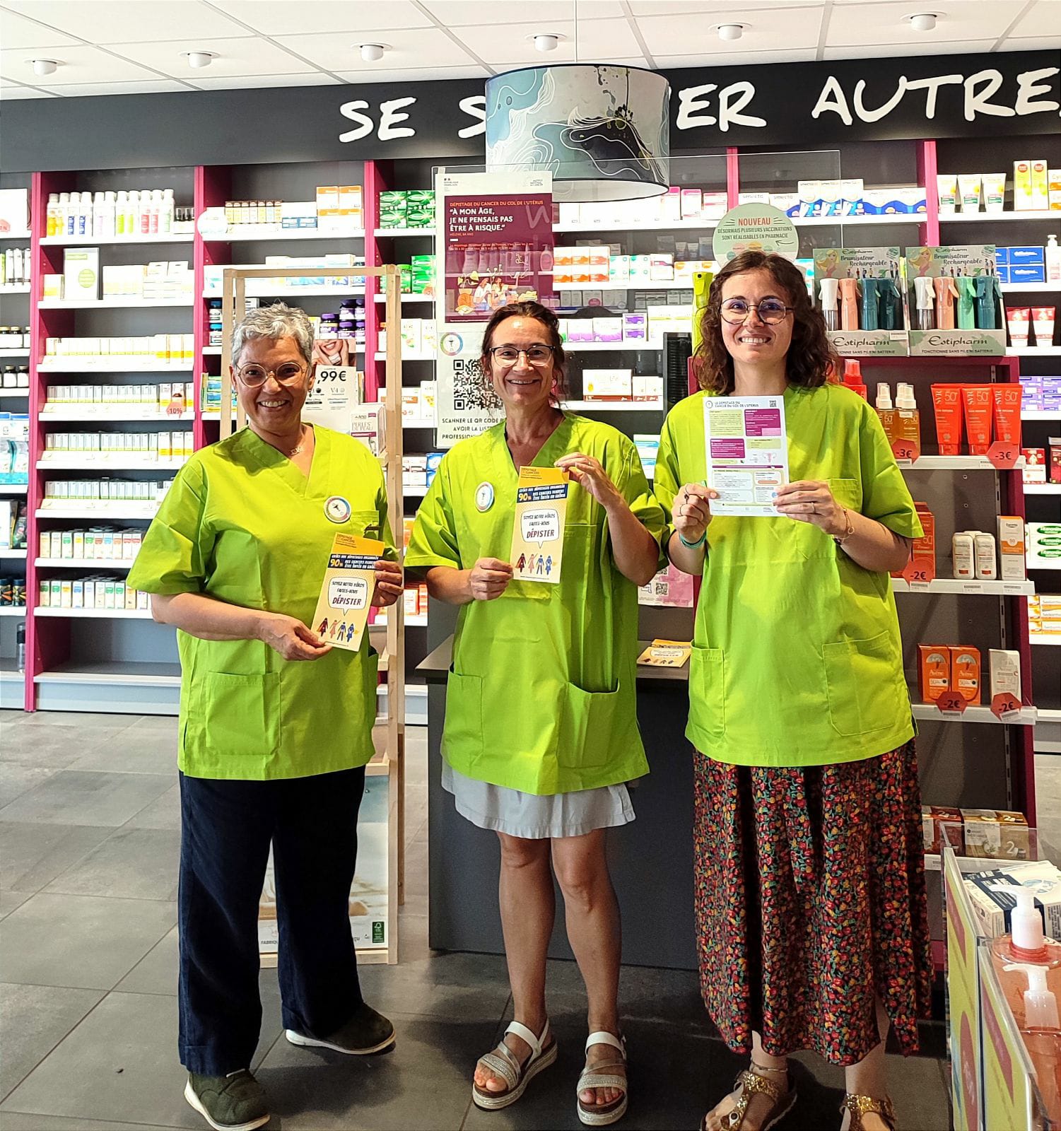 Durant trois périodes de l'année, les pharmaciens et leurs équipes seront habillés avec des blouses et badges aux couleurs de l'évènement, vert pour le cancer du col de l’utérus, rose pour le cancer du sein et bleu pour le cancer du côlon. Ils auront pour mission de créer une dynamique de sensibilisation et de prévention de leurs patients aux dépistages.